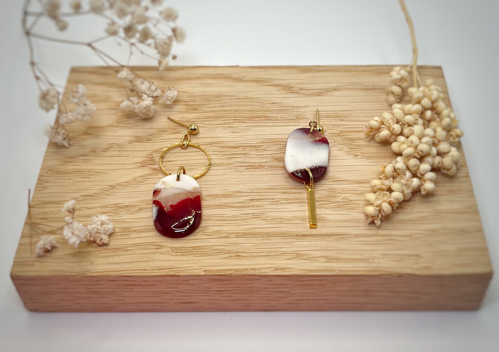 - Boucles d’oreilles en acier inoxydable, laiton et en argile polymère
