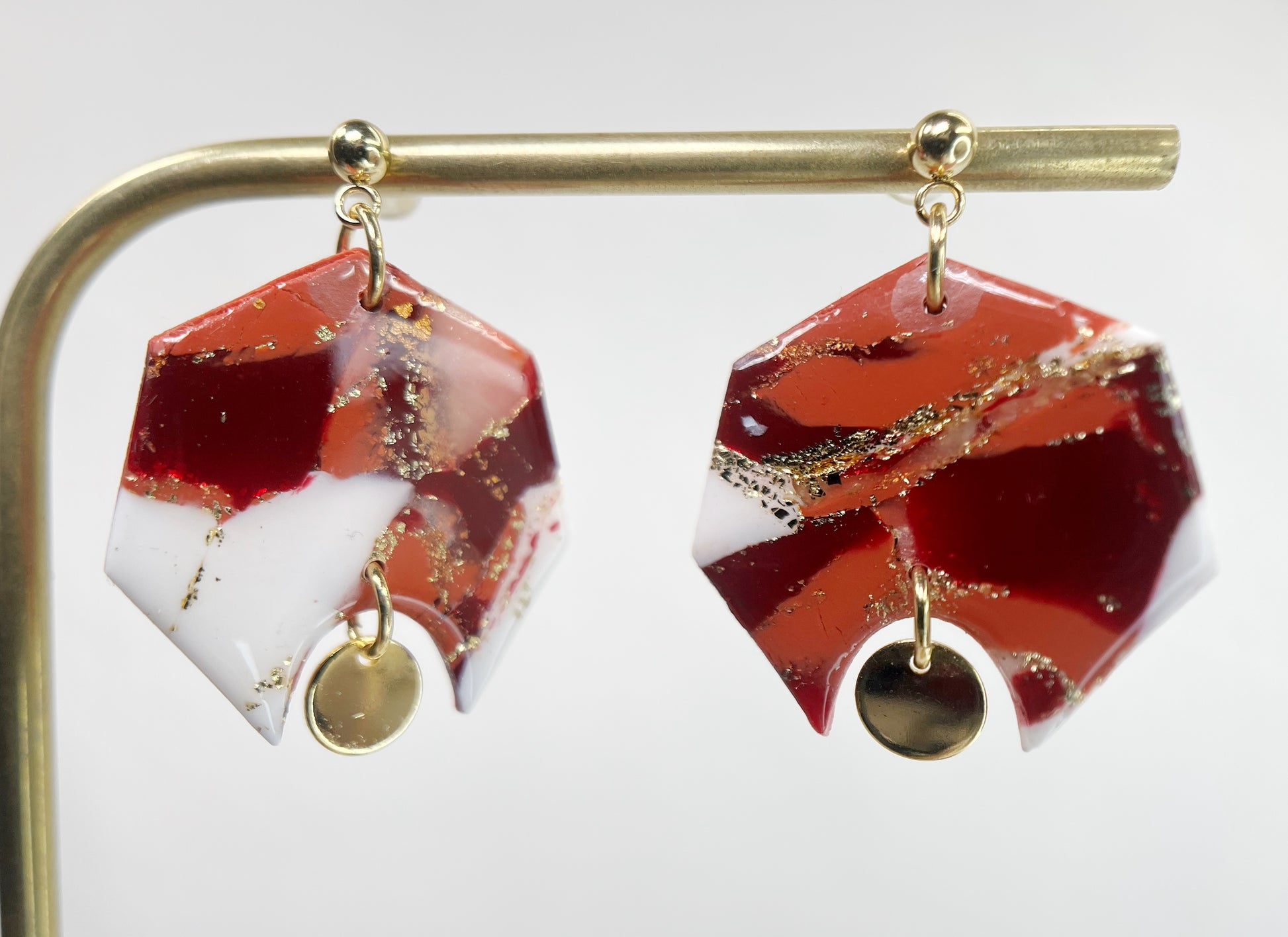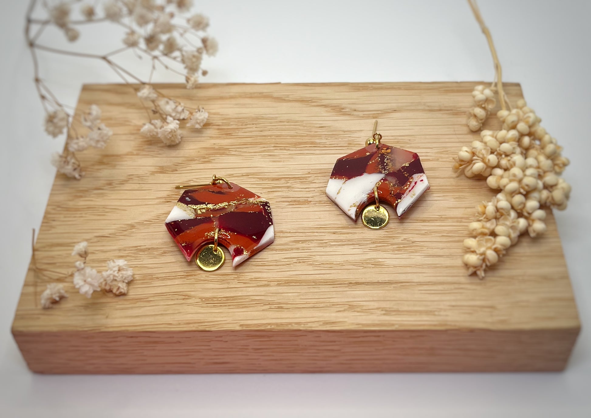 - Boucles d’oreilles en acier inoxydable, laiton et en argile polymère