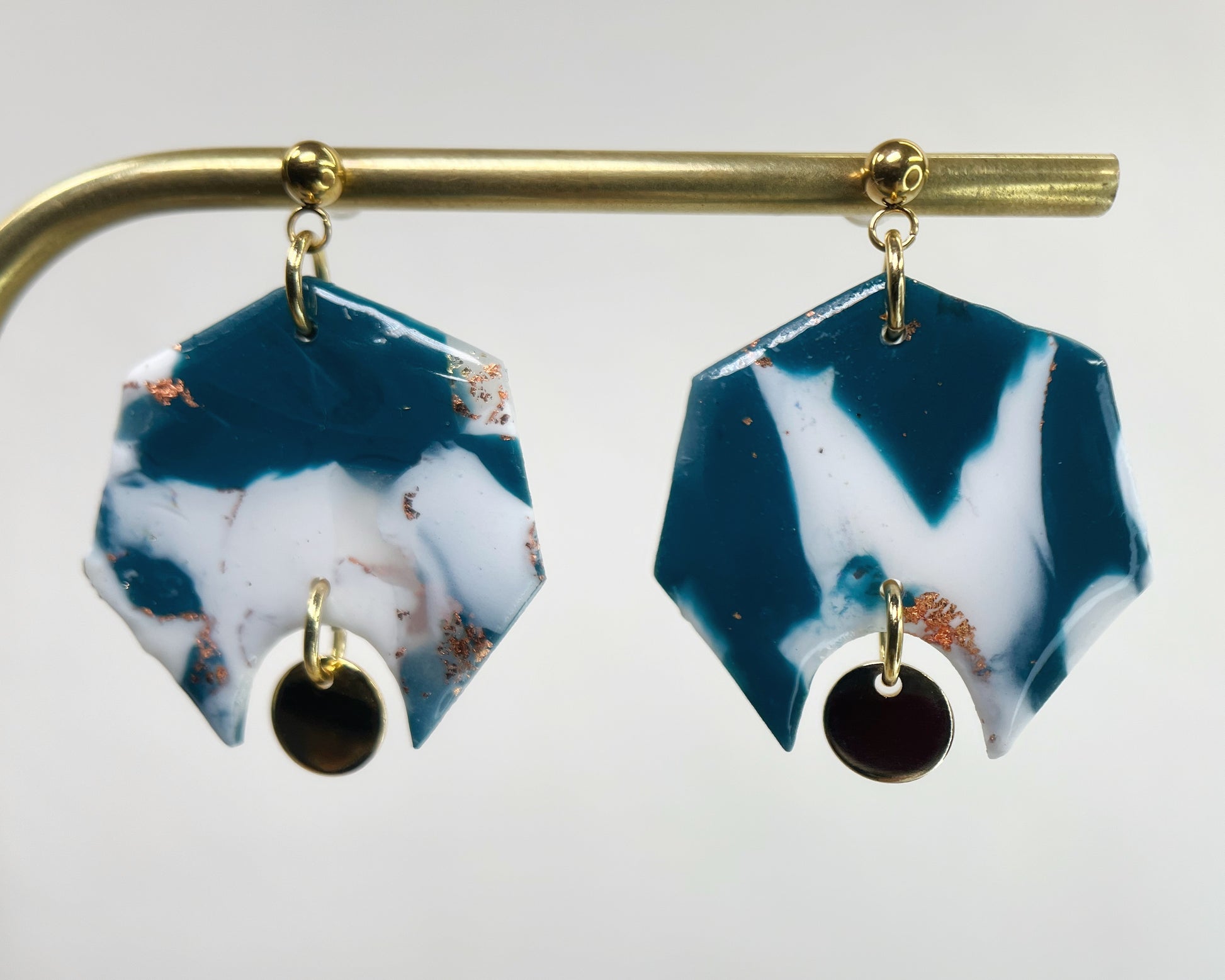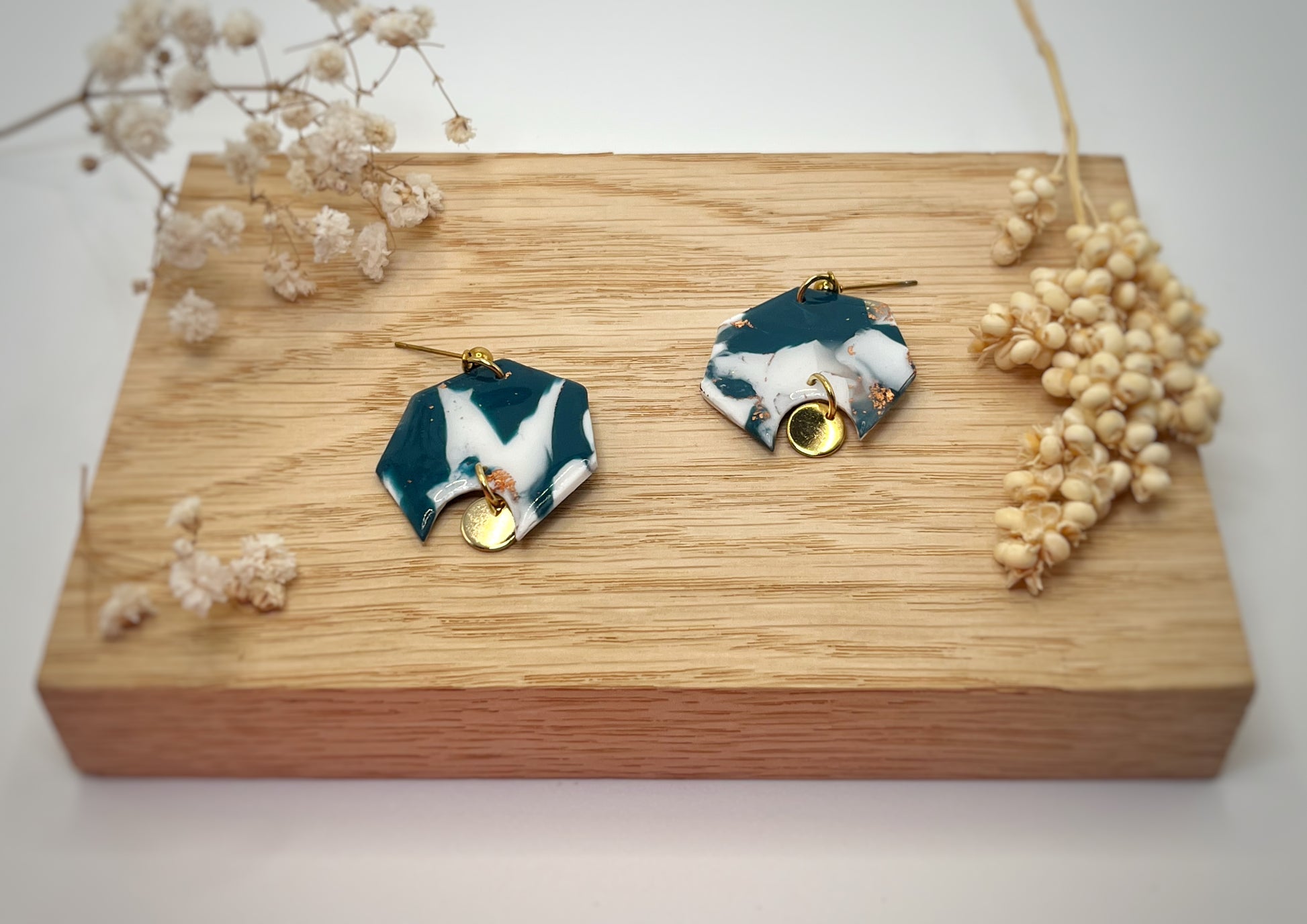 - Boucles d’oreilles en acier inoxydable, laiton et en argile polymère