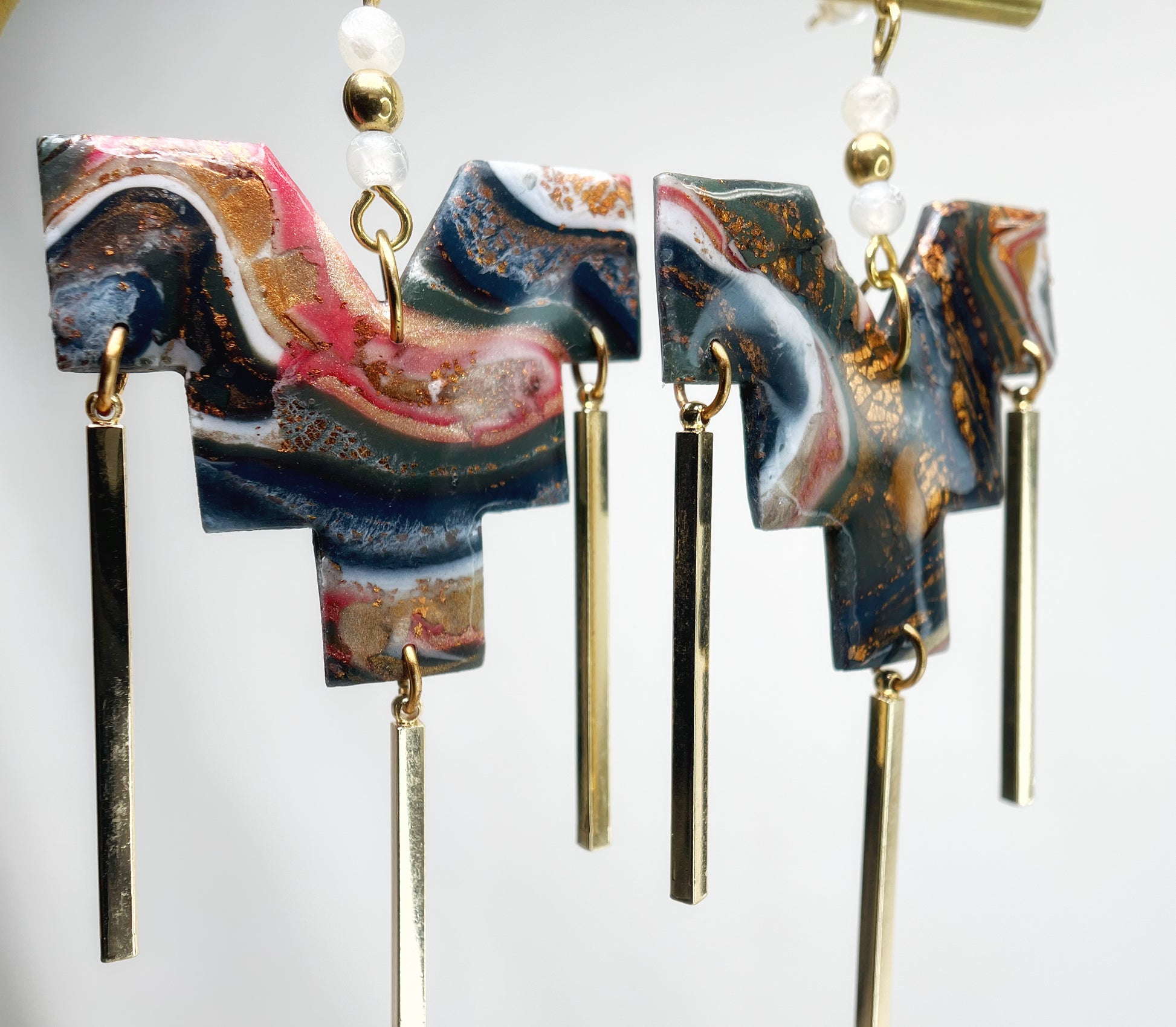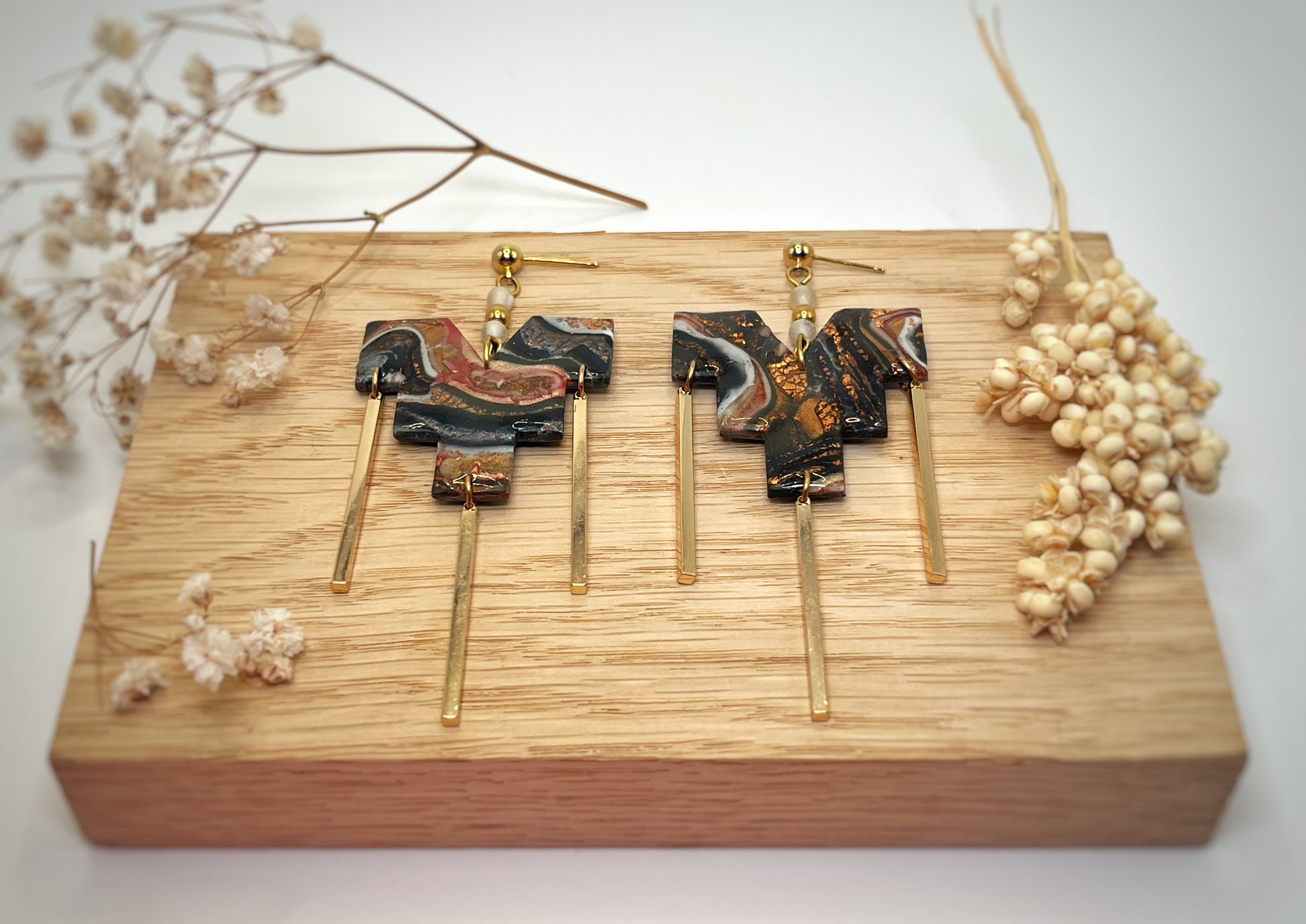 - Boucles d’oreilles asymétriques en acier inoxydable plaqué or et en argile polymère