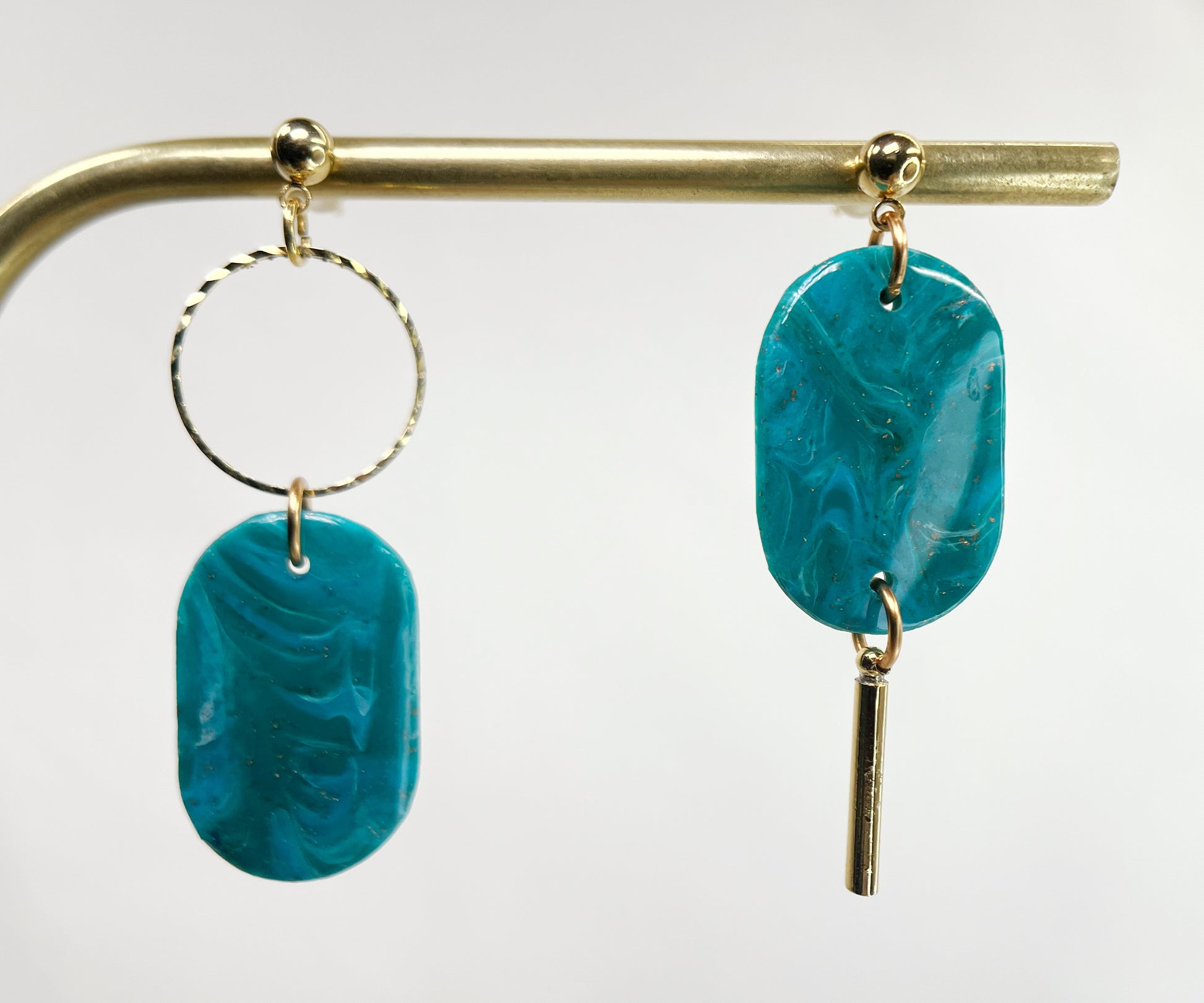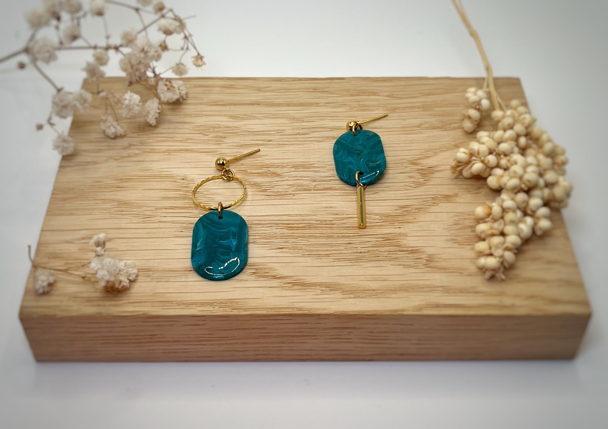- Boucles d’oreilles en acier inoxydable, laiton et en argile polymère
