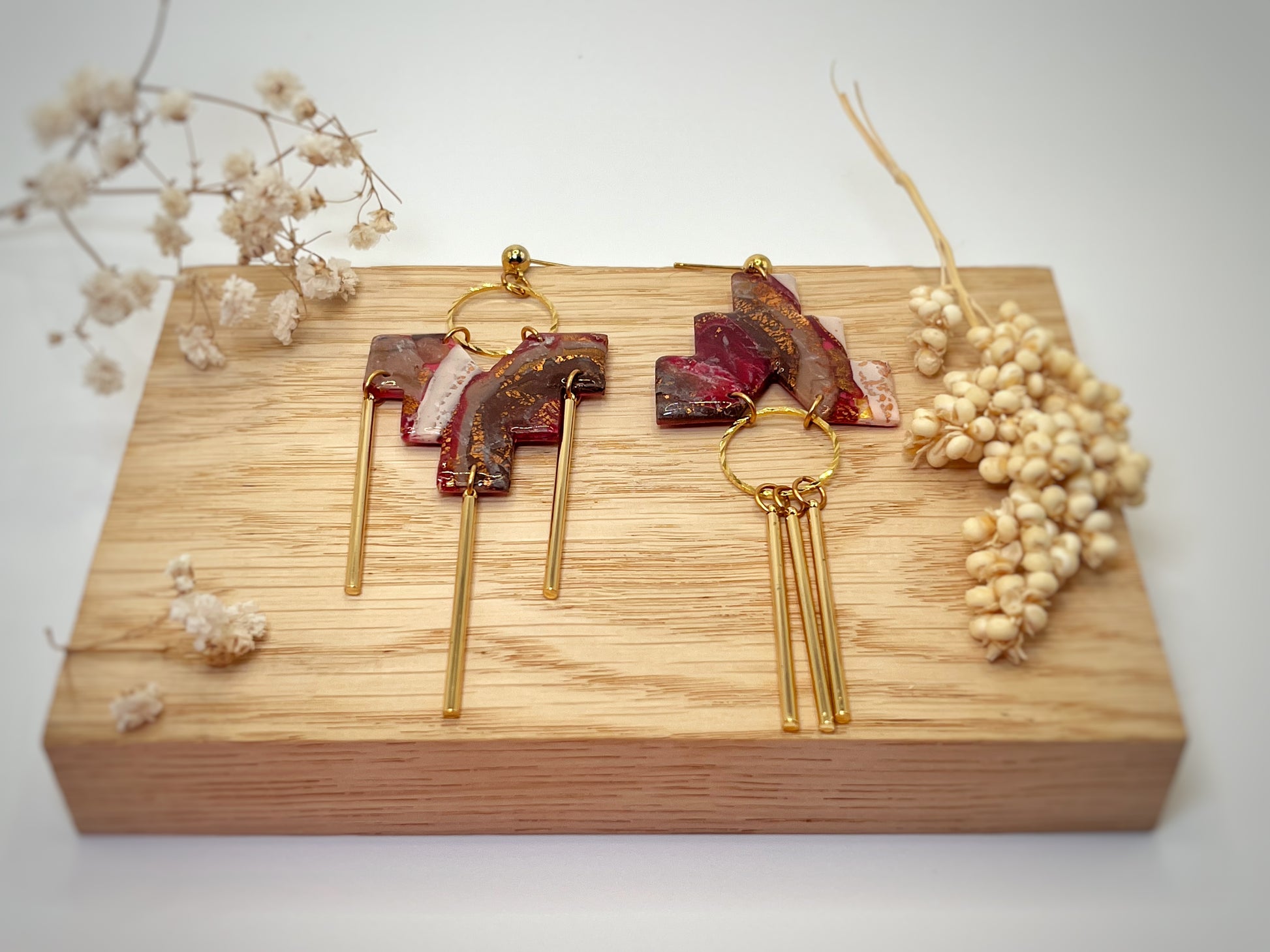- Boucles d’oreilles asymétriques en acier inoxydable plaqué or et en argile polymère