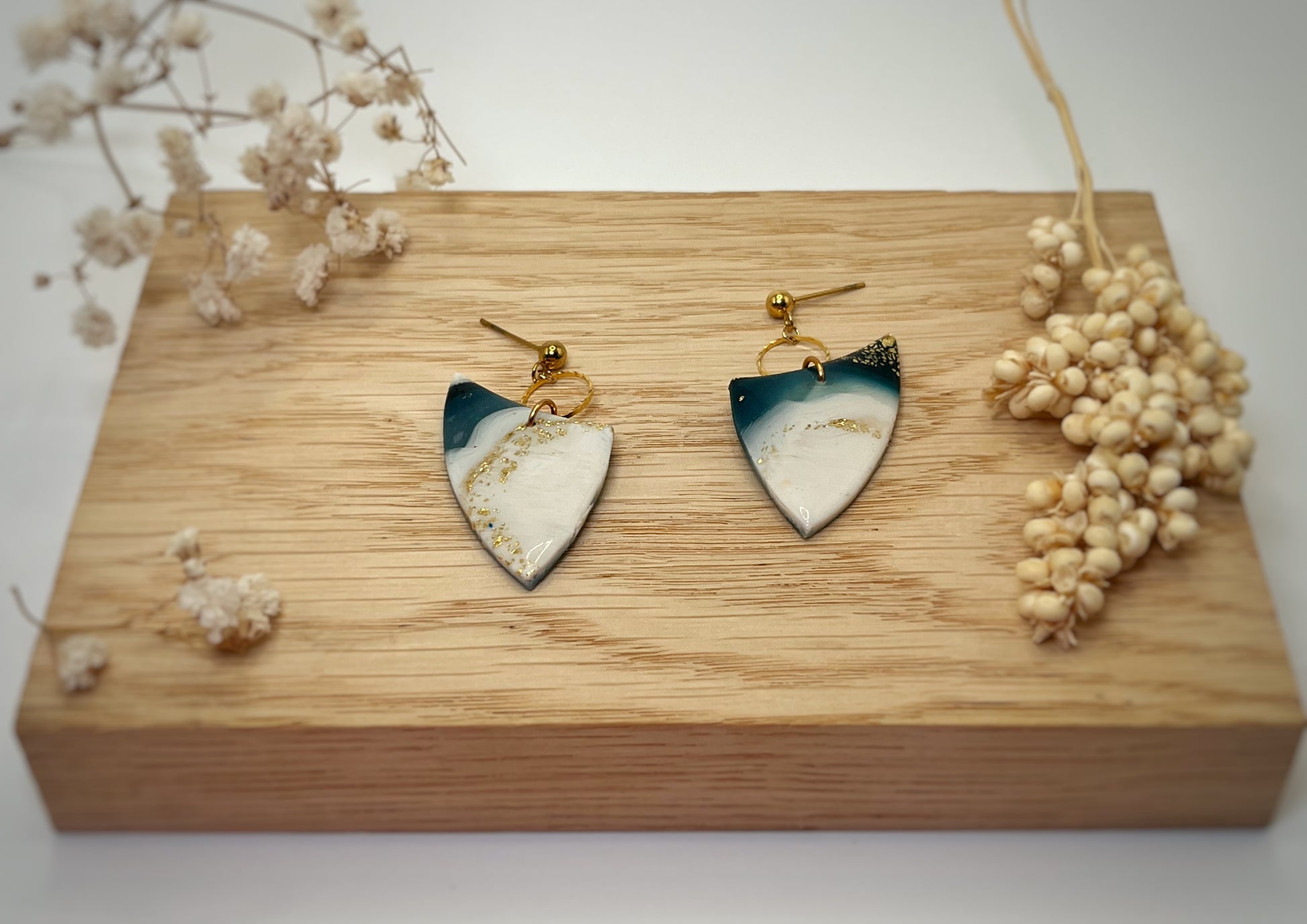 - Boucles d’oreilles en acier inoxydable et en argile polymère
